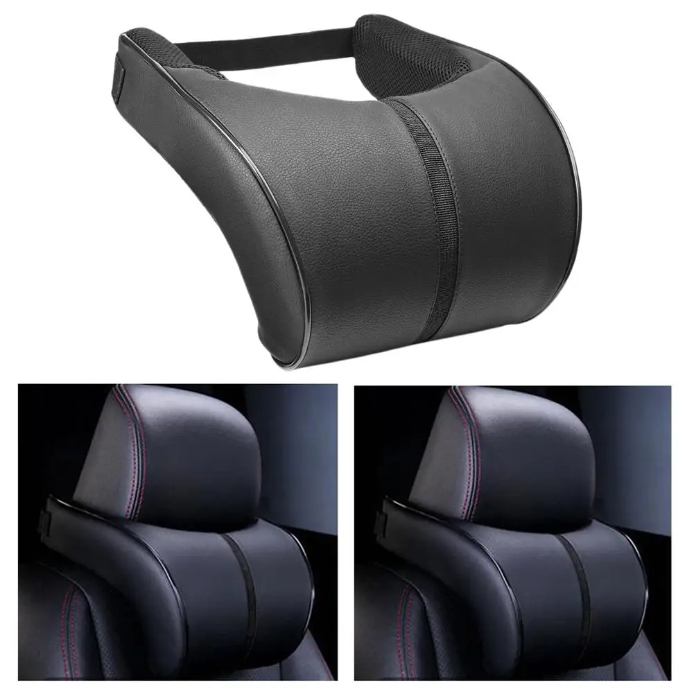 1Pcs Car Neck Pillow PU Leather Car Headrest Pillow Memory Foam Neck Pain Relief Car Seat Pillow Neck Support Auto Accessories