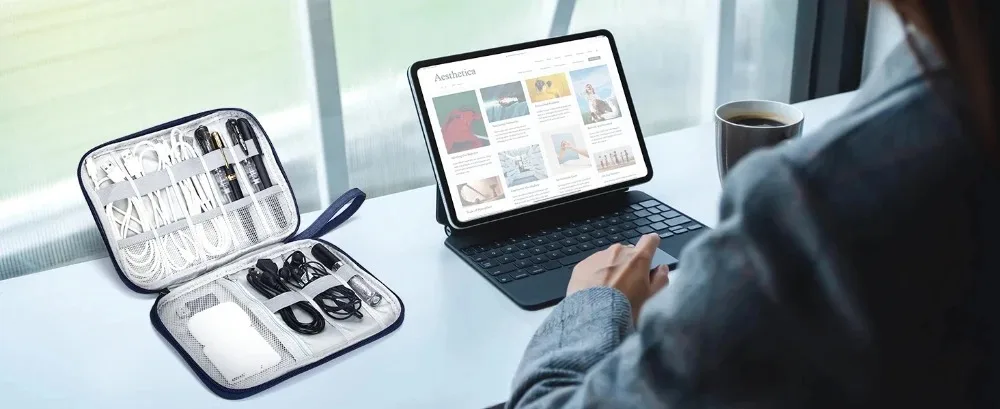 This storage bag is not only a data cable storage bag, but also can be used as a makeup brush storage bag. It can simultaneously store makeup techniques, eyeliner pens, mascara, lip liner pens and other cosmetics
