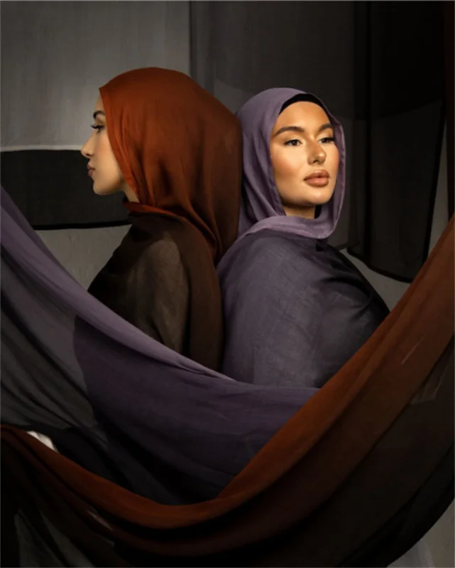90*185cm Big Size Women Gradient Color Cotton Rayon Hijab Scarf Lady High Quality Wraps Shawls Muslim Headband Islamic Scarves