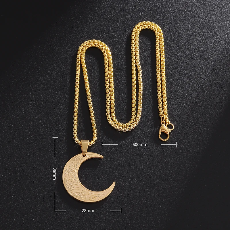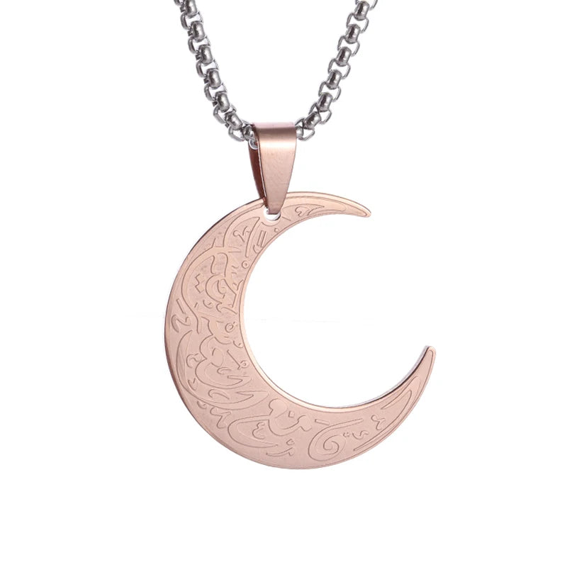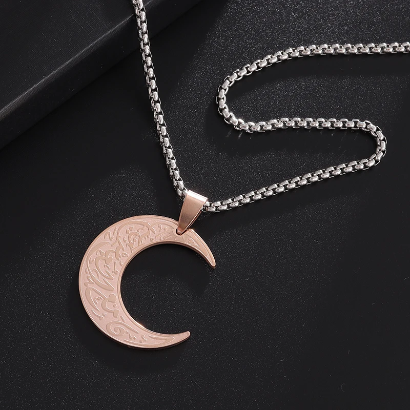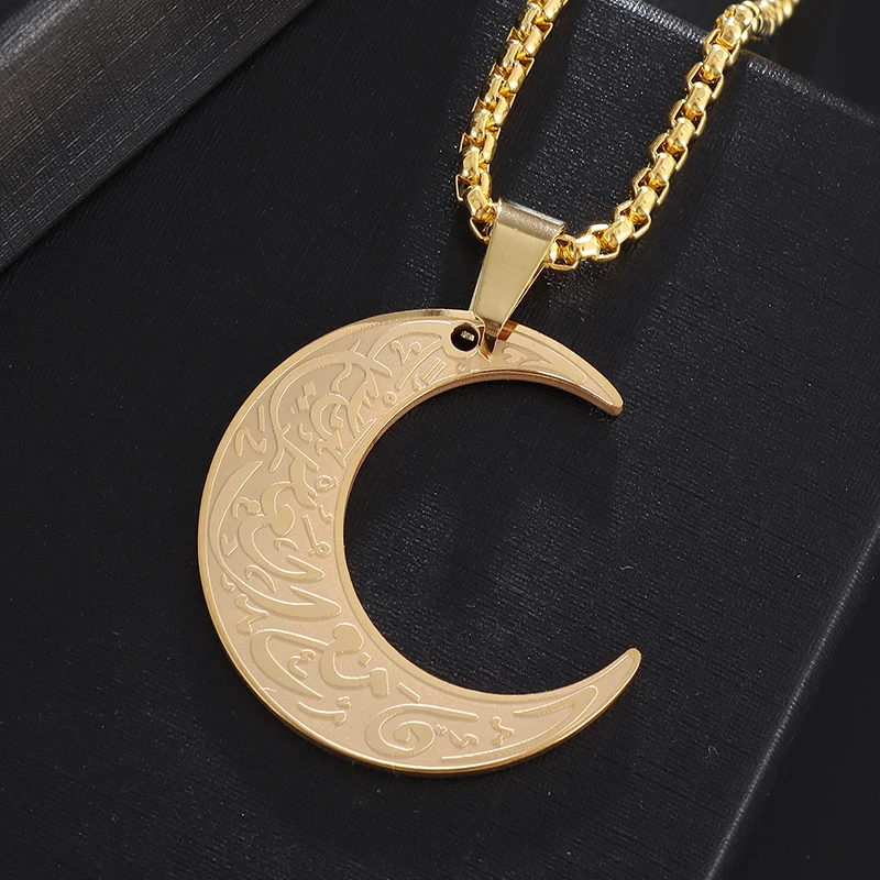 Ayatul Kursi Arabic Religious Moon Pendant Necklace for Women God Messager Islam Muslim Stainless Steel Jewelry