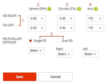 Cylinder------CYL: +2.00~+4.00 or CYL:-2.00~-4.00 (ADD 10$)