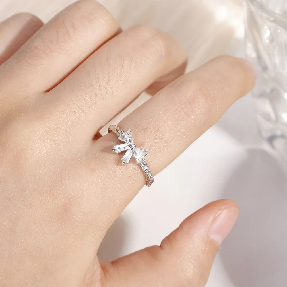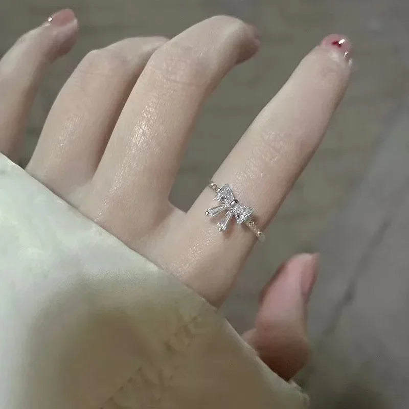 Elegant Bowknot Y2K Rings For Women Fashion Zircon Flower Rings Adjustable Exquisite Rings Design Wedding Party Jewelry Gifts