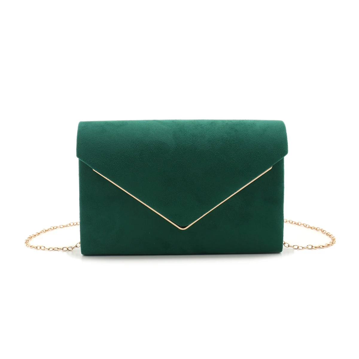 Envelope Design Velvet Women Evening Bags V Metal Fashion Small Cover Clutch Bags With Shoulder Chain Party Wedding Prom Handbag