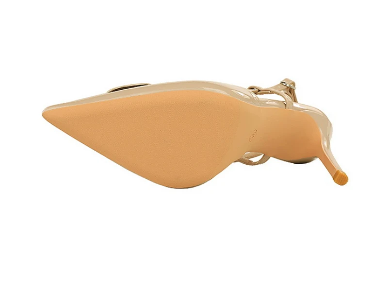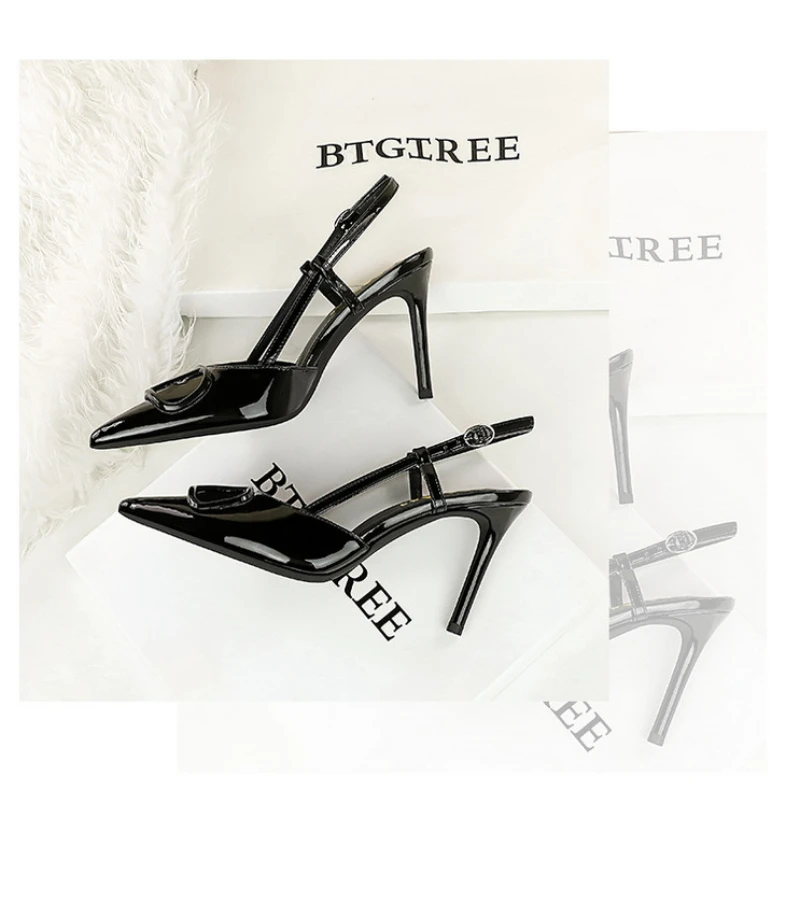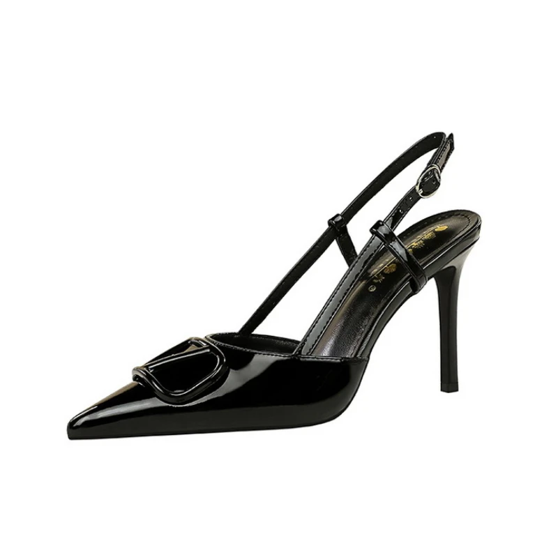 French Elegant And Fashionable V-Shaped Square Buckle Pointed High Heels For Women's Thin Heel Patent Leather Tripping Women's