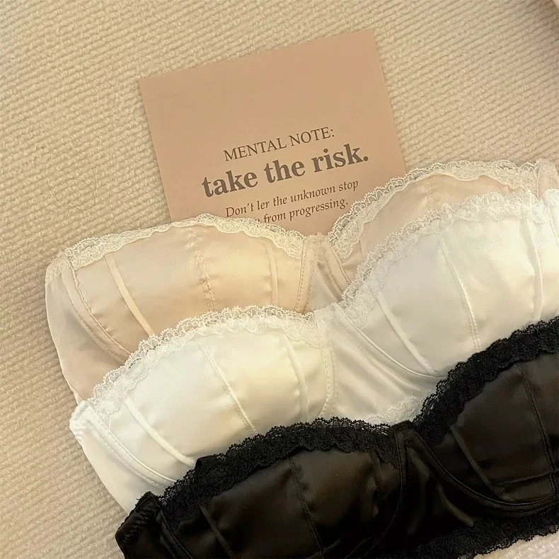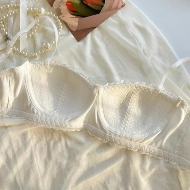 French Satin Seashell Cup Lace Rimmed Lingerie Women's Underwire Thin Half Cup Sexy Girl Bra