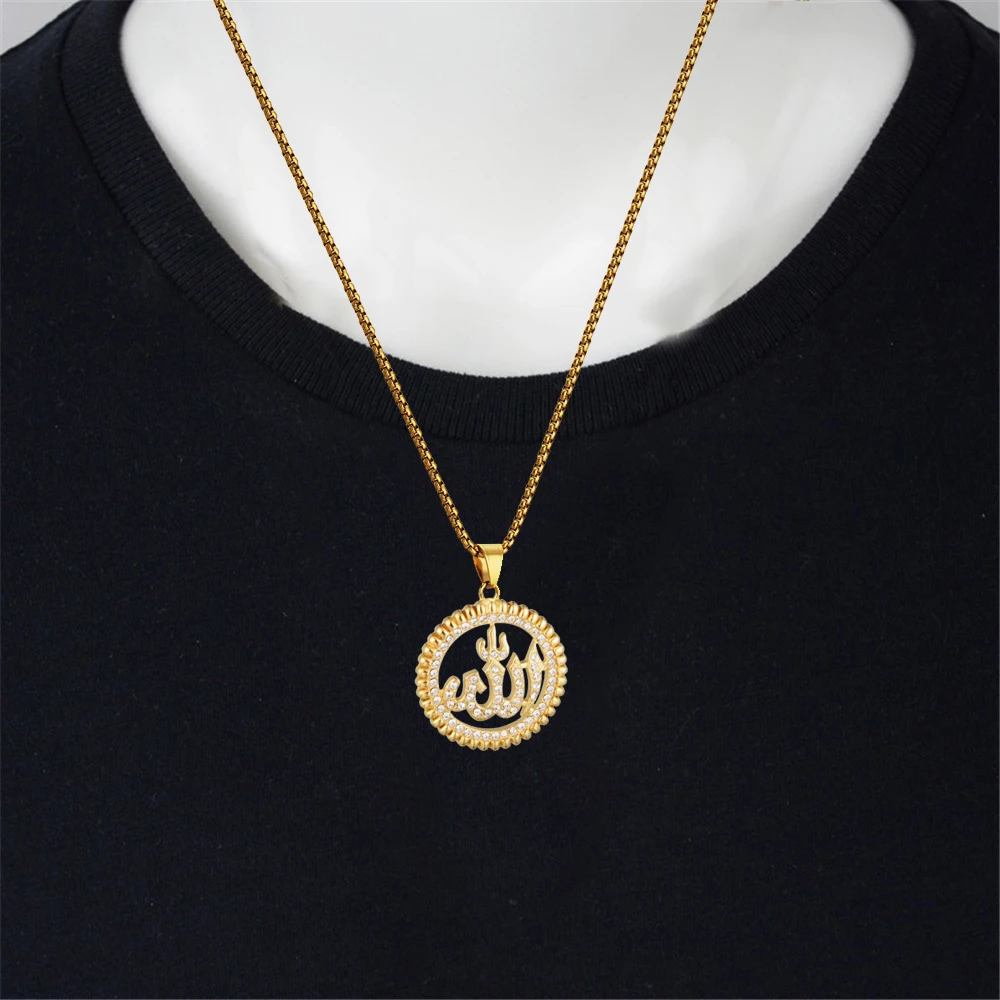 Hip Hop Iced Out Islamic Muslim Allah Pendant Gold Color Stainless Steel Round Necklace For Men Women Islam Jewelry Gift 2025