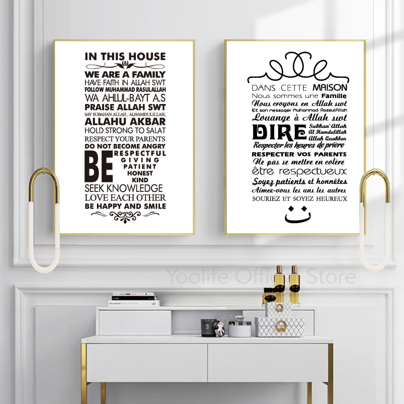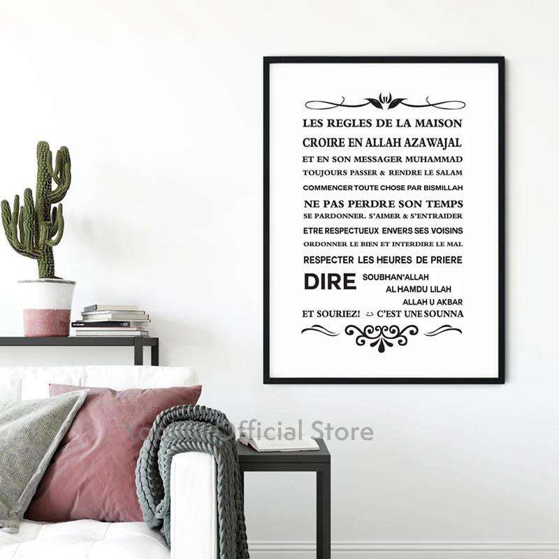 Islamic House Rules Canvas Art Print Painting Poster, Wall Pictures for Allah Islam Living Room Home Decoration