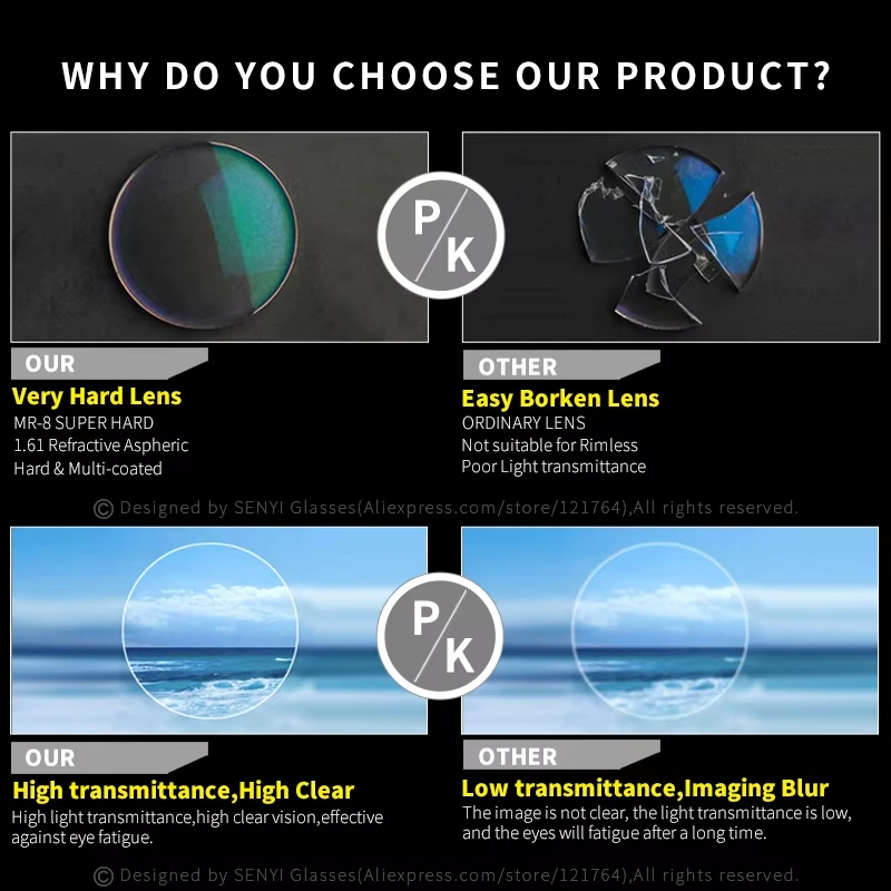 MR-8 Super Tough Optic HD Lenses 1.61 1.67 1.74 Ultra Thin Prescription Glasses Myopia Presbyopia Anti Glare Anti Blue Lens 2pcs