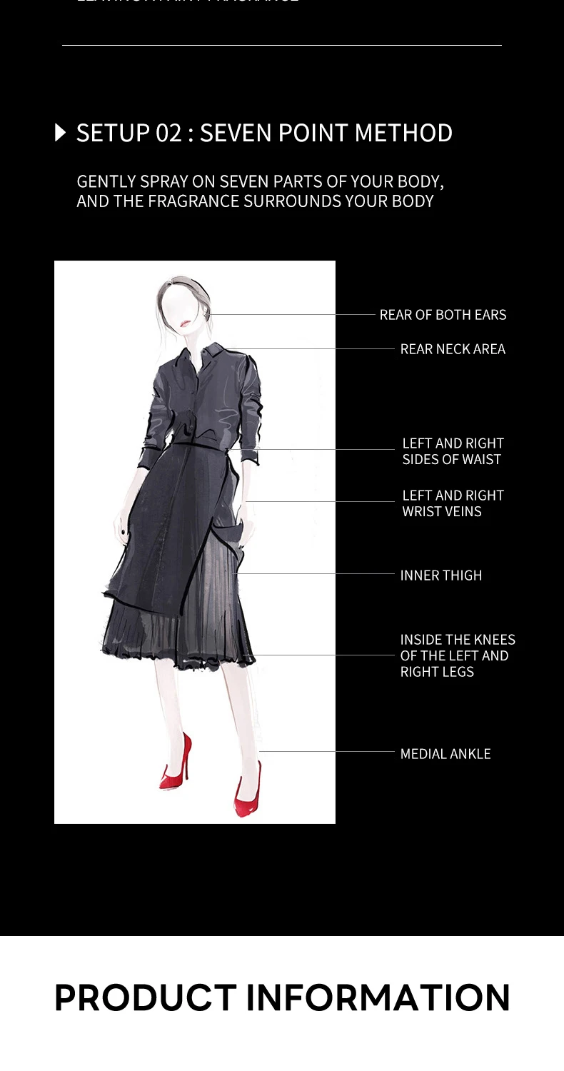 2.Body parts:Behind the ears, inside the wrist, behind the neck, hair, clothing, behind the knees ..