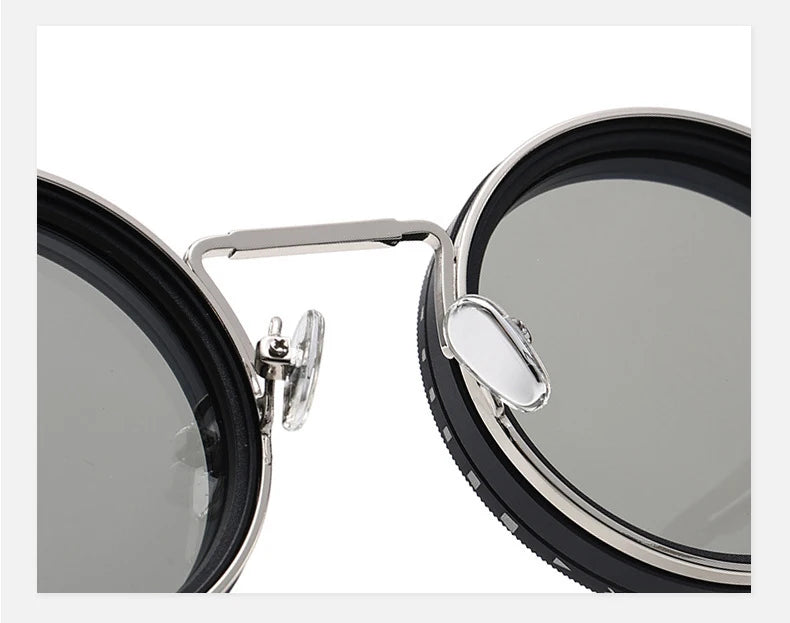 Polarized Round Sunglasses Men ND9 Adjustable Dimming Sun Glasses Women Retro Punk Fishing Eyeglasses Outdoor Shades UV400