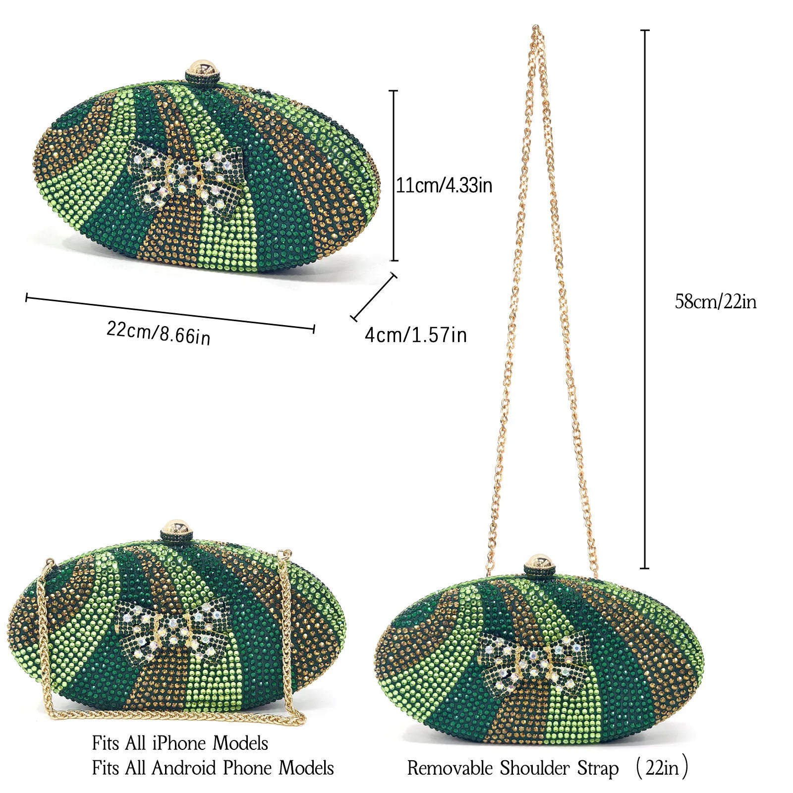 Venus Chan Green Color Pointed-Toe High Women Heels Shoes and Bags for Women Rhinestone Evening Party Elegant Luxury Handbag