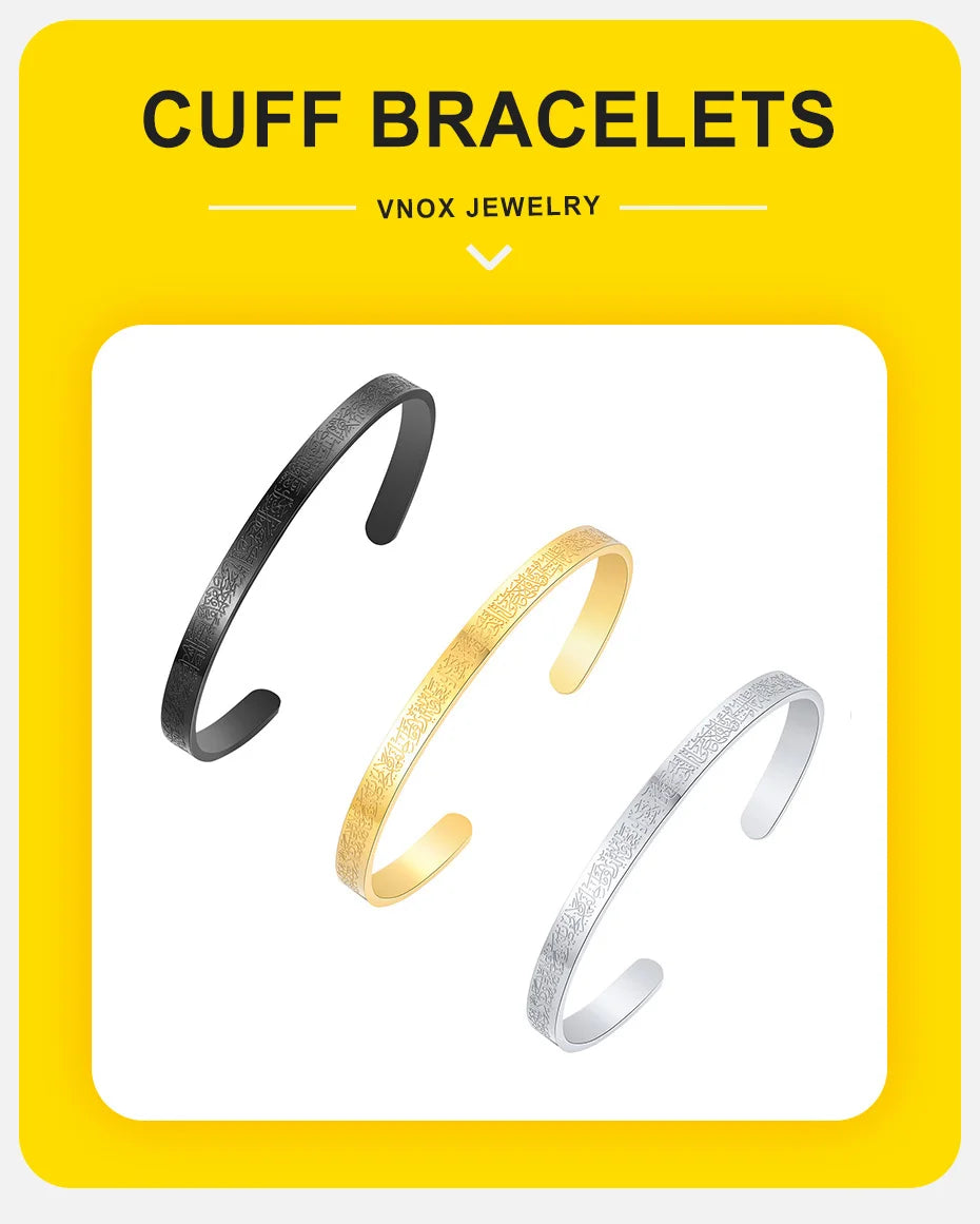 Vnox Ayatul Kursi Sutra Men Cuff Bracelet Stainless Steel Personality Islamic Muslim Calligraphy Arabic God Messenger Jewelry