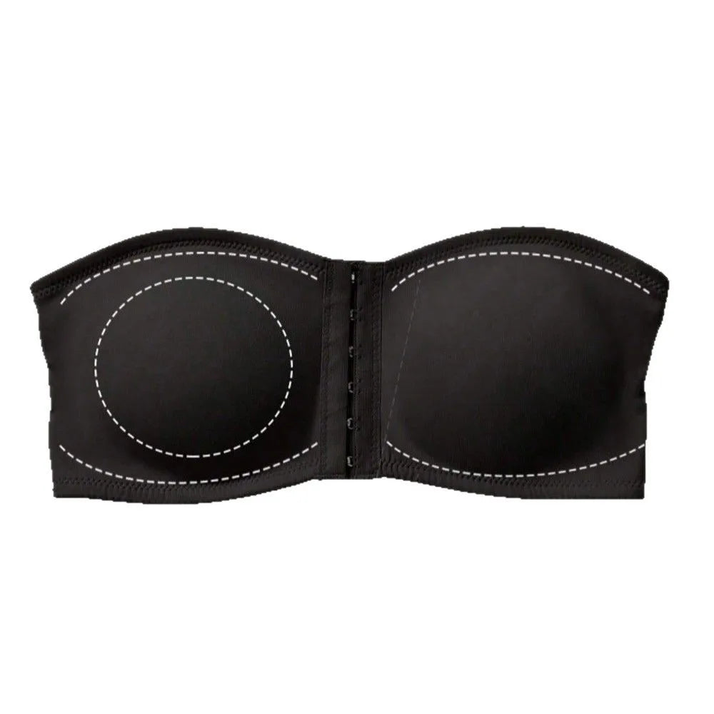 Women's Bra Black Front Buckle Removable Padded Wireless Soft Ice Silk Traceless Bra Strapless Underwear For Women Strapless Bra