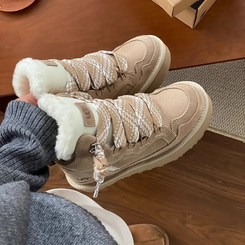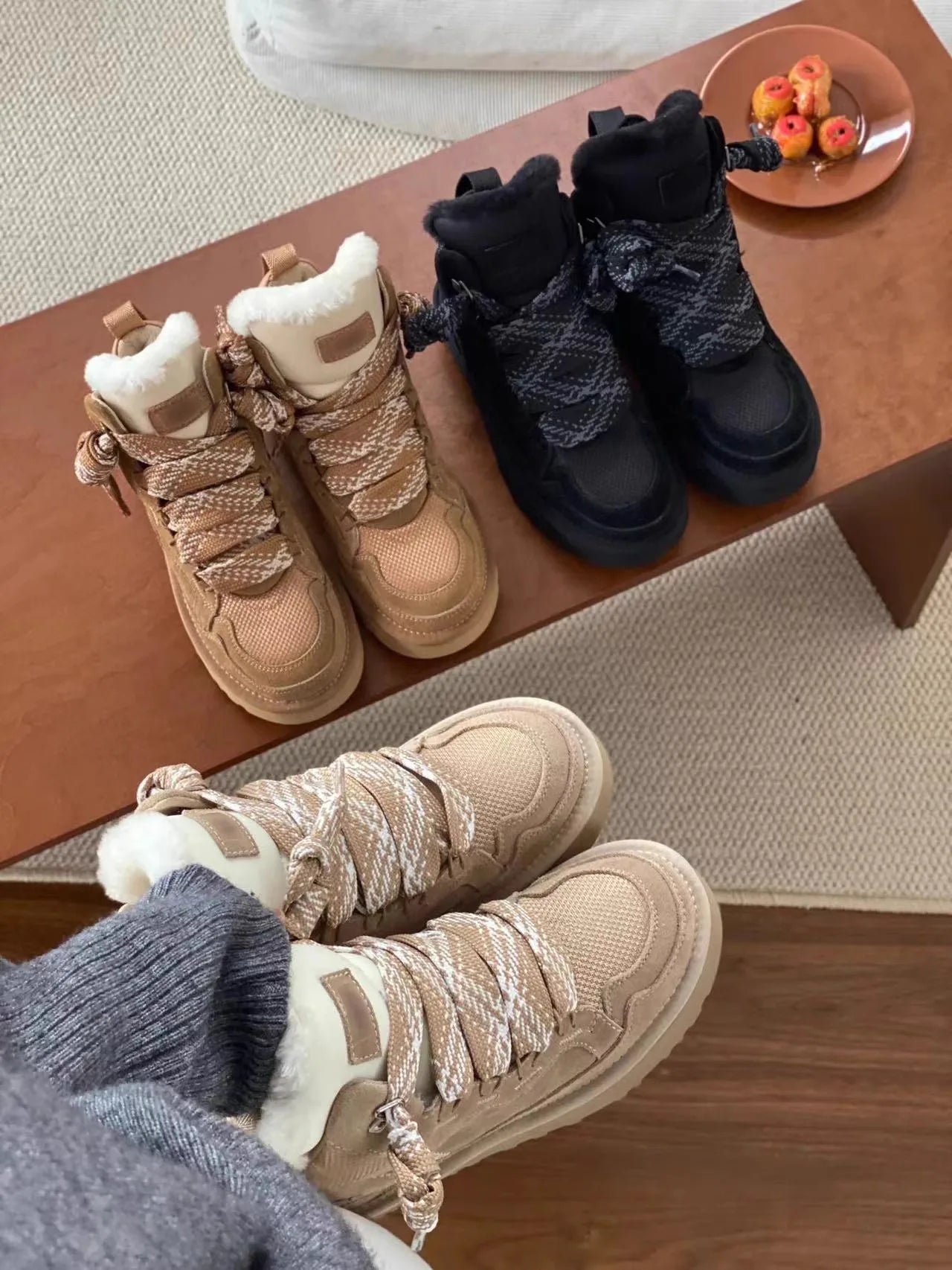 Women's cotton shoes 2025 new snow boots with plush and thickened fur integrated warmth and anti slip winter women's shoes