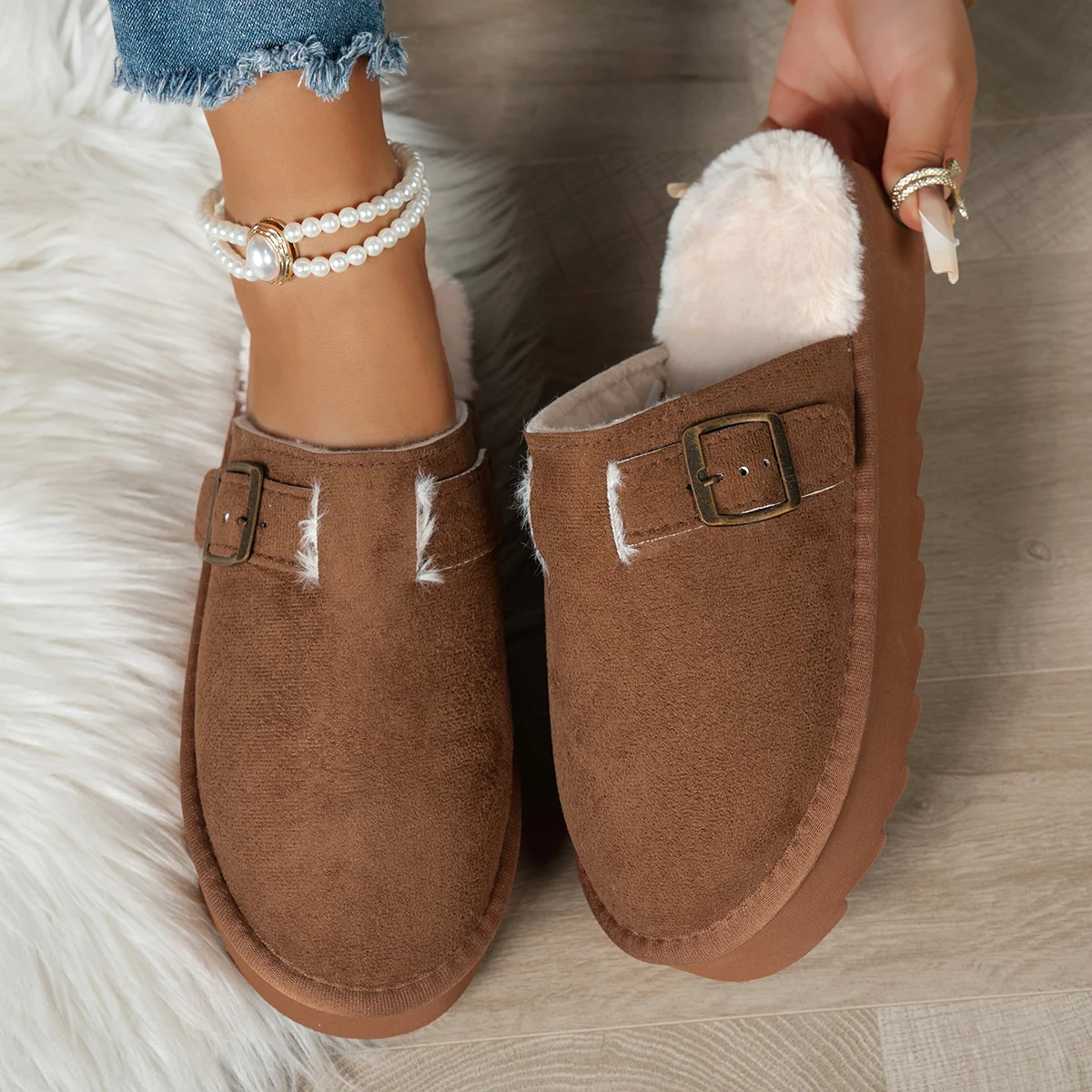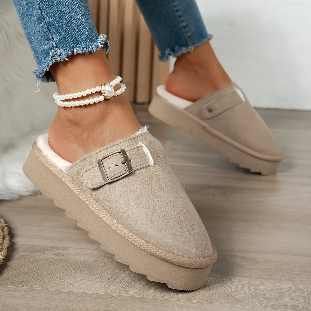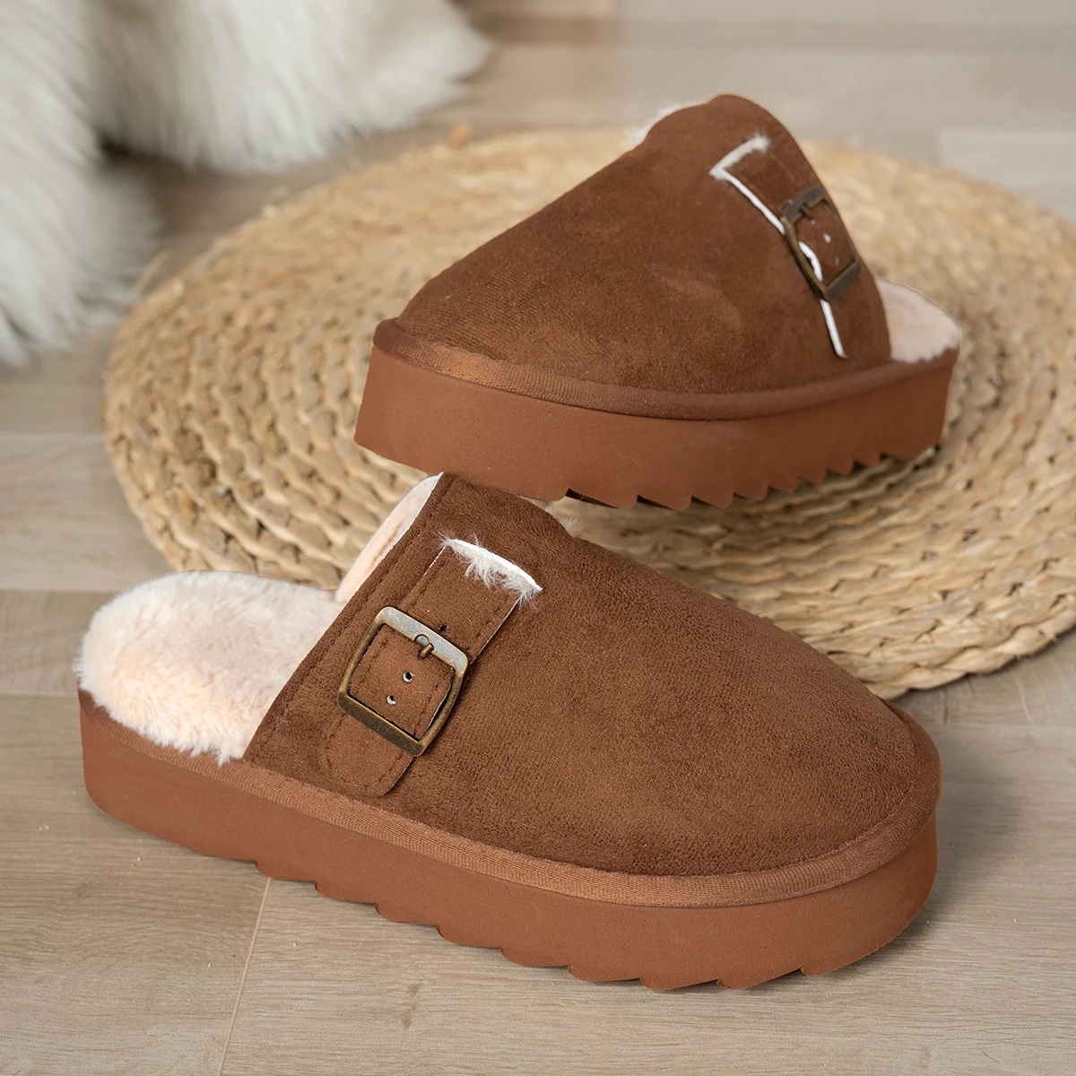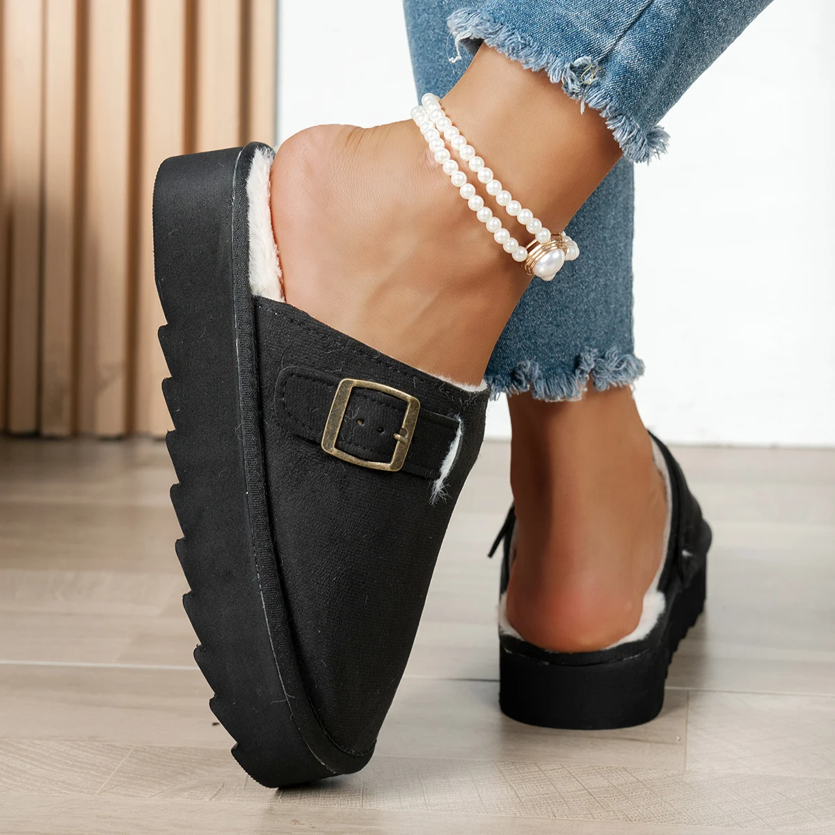 Fashion meets function with a buckle detail, adding style to indoor footwear.